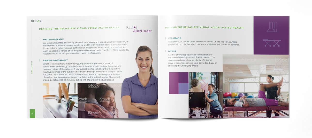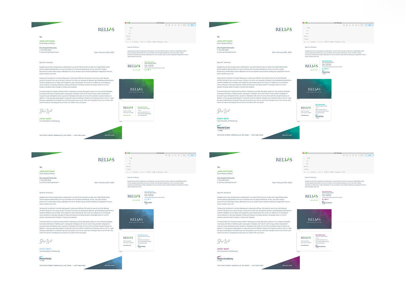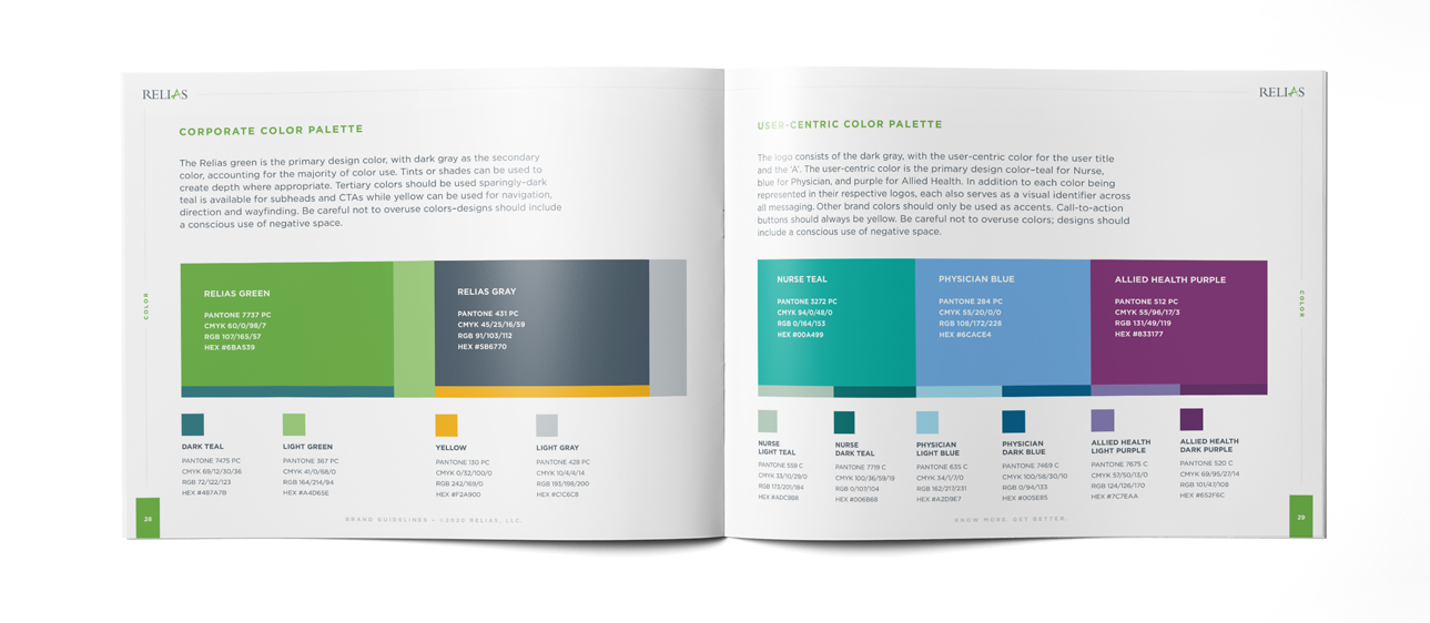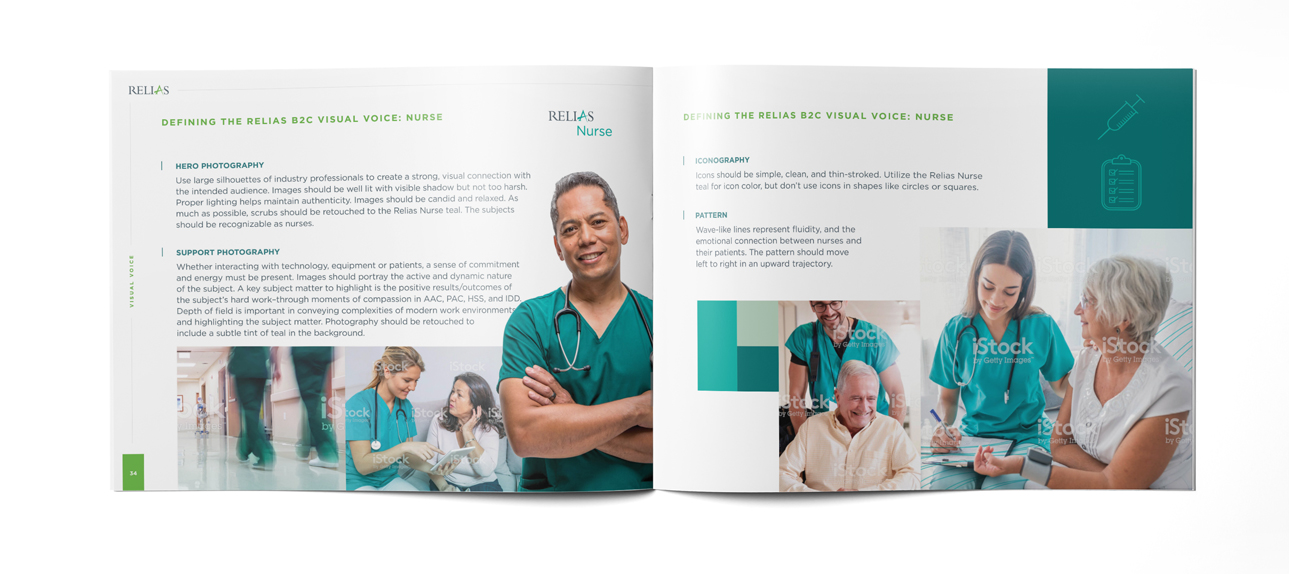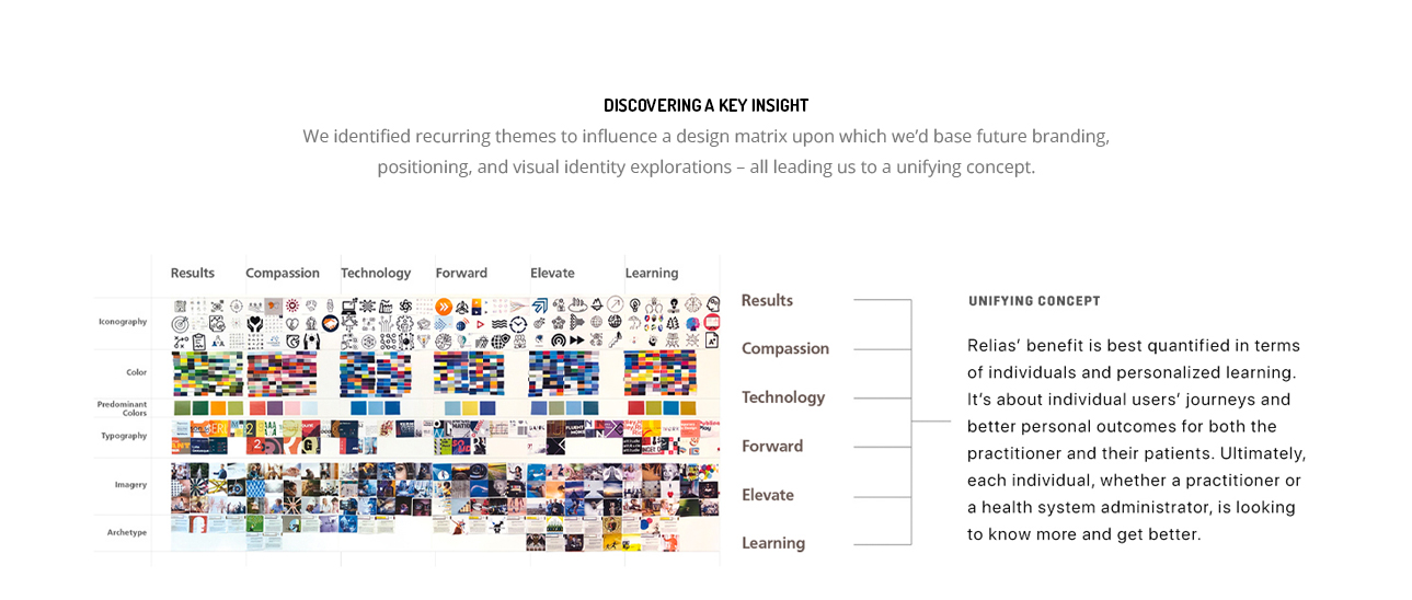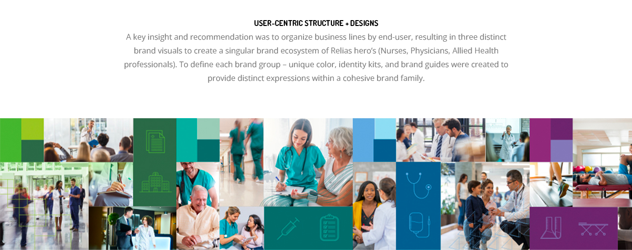 Through key stakeholder interviews and in person workshops, we set the foundation of a comprehensive design matrix upon which we based future branding, positioning, and visual identity explorations. At the center were the end users, Relias’ heroes — Nurses, Physicians, Allied Health Professionals. We developed each brand group with unique identity kits, brand guides and a comprehensive plan for implementation and future acquisitions.